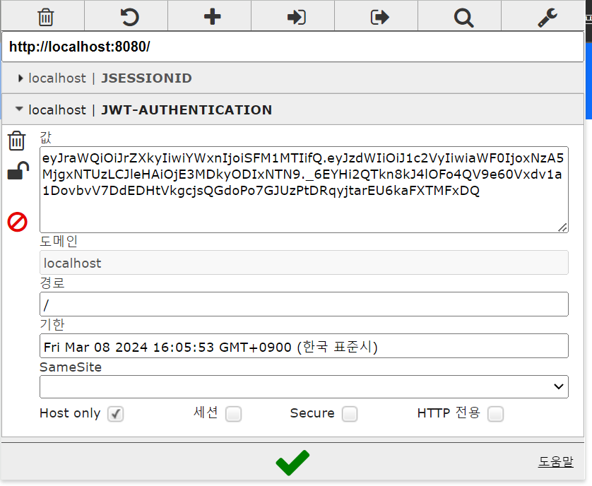- 로그인시 JWT-AUTHENTICATION 쿠키가 생성된걸 확인